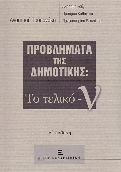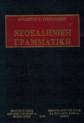 Η πρόσφατη έκδοση της «Νεοελληνικής Γραμματικής» του Αγαπητού Τσοπανάκη, ακαδημαϊκού και ομότιμου πανεπιστημιακού καθηγητή, αποτελεί ποσοτική και ποιοτική έκπληξη, ακόμη και για εκείνους που παρακολουθούν από κοντά τον ακάματο δάσκαλο, ερευνητή και συγγραφέα. Ήδη «Το Βήμα της Κυριακής» (28/8) πρόλαβε να πληροφορήσει τους αναγνώστες του για το μείζονος σημασίας γραμματολογικό αυτό γεγονός και προτίθεται, όσο ξέρω, να του αφιερώσει σύντομα πολυκριτική παρουσίαση.