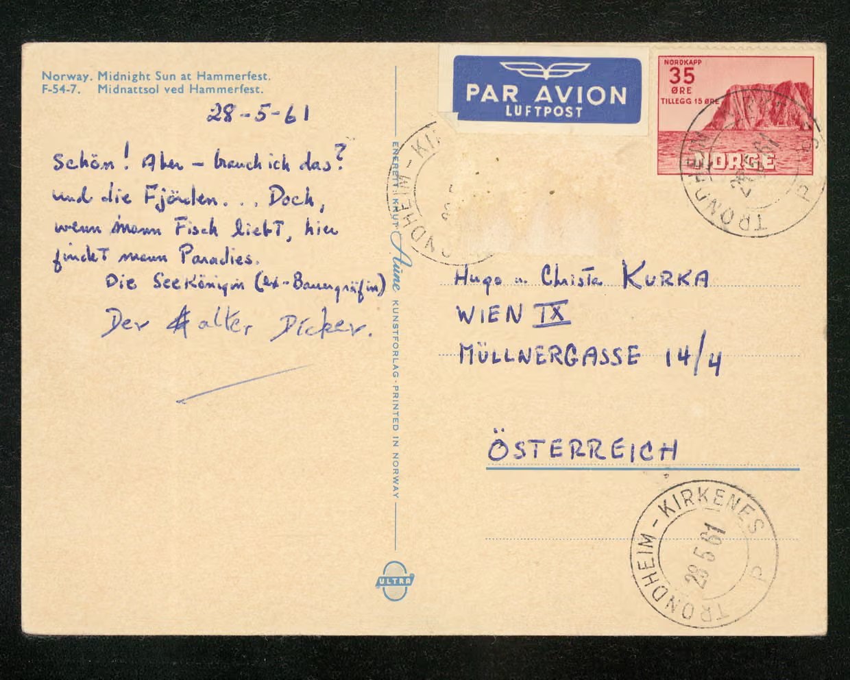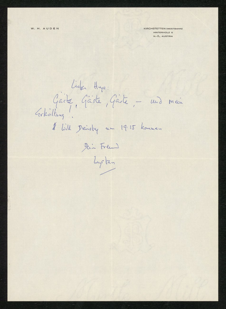 Μια επιστολή του 1961 από τον Ώντεν προς τον Kurka. Φωτογραφία: Αυστριακό Κέντρο Ψηφιακών Ανθρωπιστικών Επιστημών (ACDH), Βιέννη