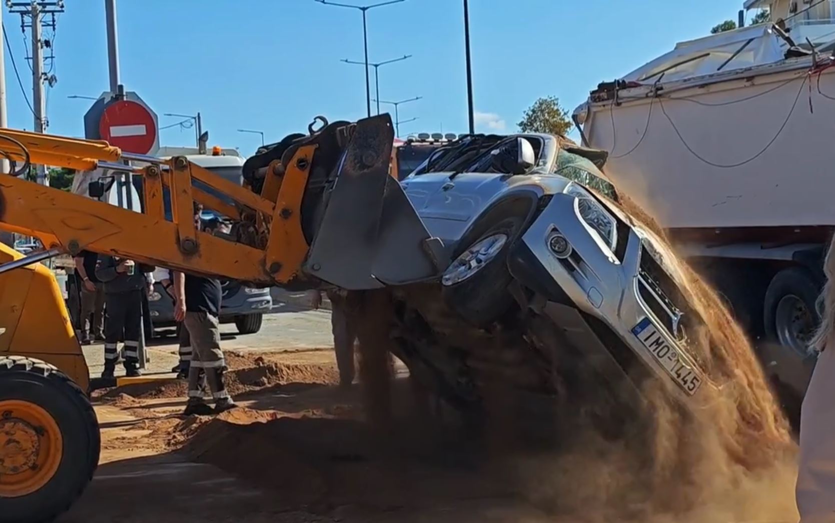 Από καθαρή τύχη, στο αυτοκίνητο που καταπλακώθηκε από τα χώματα δεν επέβαινε άνθρωπος εκείνη την ώρα.