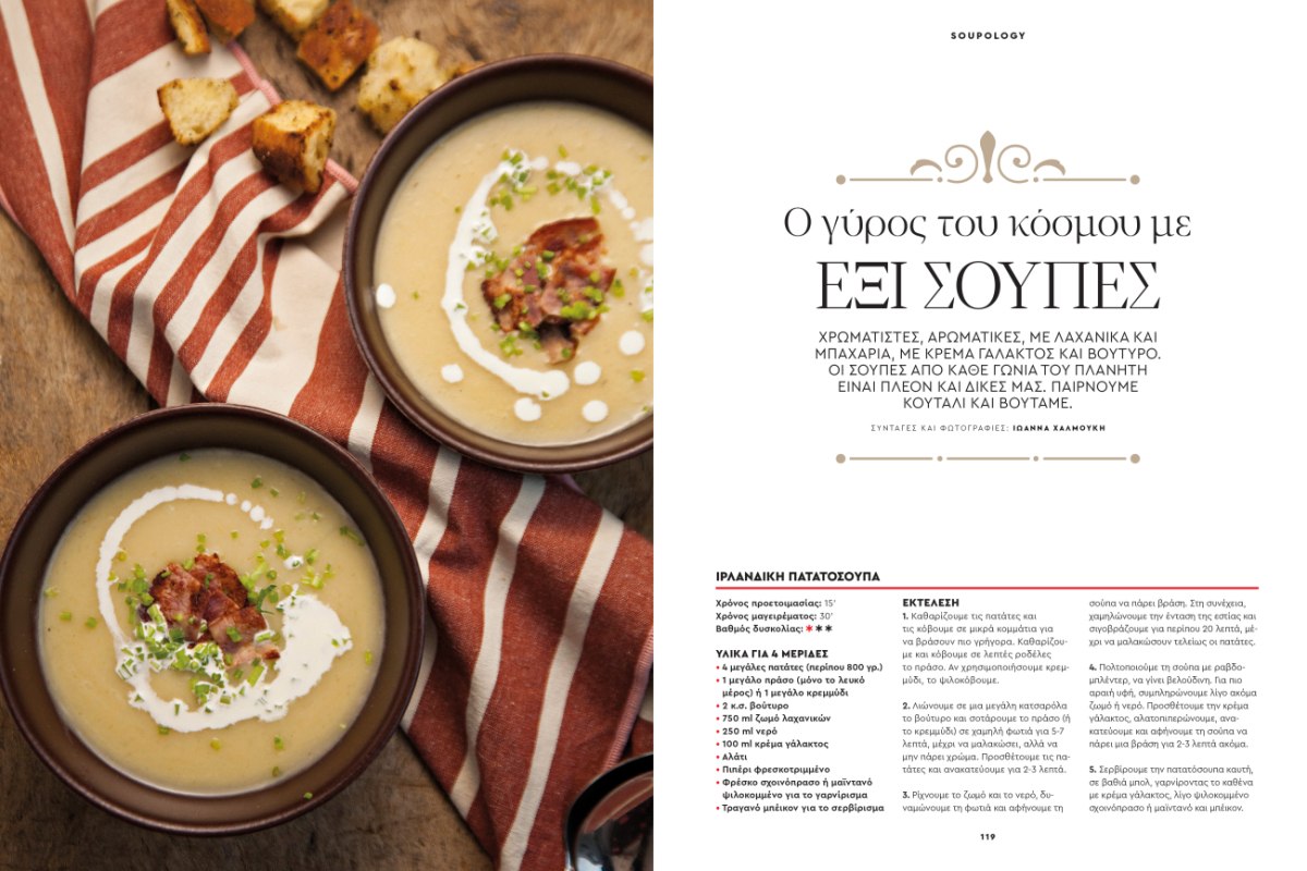 Με αφετηρία τις σούπες — από τις παραδοσιακές μέχρι τις πιο new age εκδοχές τους — το περιοδικό συγκεντρώνει μοναδικές συνταγές γεμάτες νοστιμιά, ενέργεια και δημιουργικότητα. Μαζί, ταξιδεύουμε γευστικά σε κάθε γωνιά του κόσμου, ανακαλύπτοντας αρώματα και υλικά που θα ζεστάνουν τα χειμωνιάτικα τραπέζια μας.