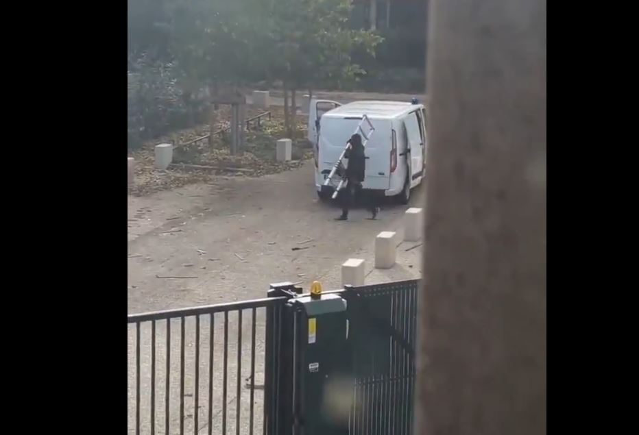 Οι μασκοφόροι άνδρες κουβάλησαν τηλεσκοπικές σκάλες, τις οποίες χρησιμοποίησαν για να εισέλθουν στις εγκαταστάσεις του εργαστηρίου.