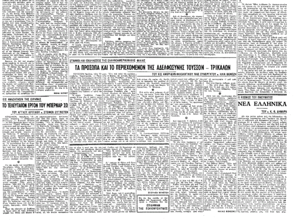 Ο φιλολογικός συνεργάτης μας κ. Ηλίας Βενέζης ευρισκόμενος εις τον Άγιον Φραγκίσκον (σ.σ. Σαν Φρανσίσκο) έλαβε τηλεγραφικήν πρόσκλησιν του Δημάρχου της Τούσσον να παραστή εις τας εορτάς της αδελφωσύνης της πόλεως με τα Τρίκαλα. Ο συνεργάτης μας μετέβη εις Τούσσον, όπου και παρέμεινε επί μίαν εβδομάδα, διά να μελετήση το ύφος και την ζωήν της πρώτης αμερικανικής πόλεως που συναδελφώνεται με μίαν ελληνικήν. Μας αποστέλλει εκείθεν σύνοψιν των εντυπώσεών του, επιφυλασσόμενος να γράψη εκτενέστερον διά την Αριζόνα εις την σειράν των εντυπώσεών του διά την Αμερικήν, αι οποίαι θα δημοσιευθούν αμά τη επιστροφή του.