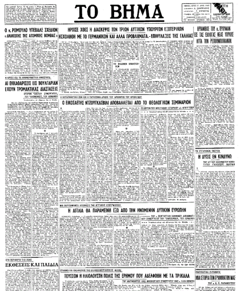Ο αντιπρόεδρος της Κυβερνήσεως (σ.σ. ο Κωνσταντίνος Τσαλδάρης, τότε υπουργός Εξωτερικών) μου λέει, μόλις συναντηθήκαμε στην Τούσσον: