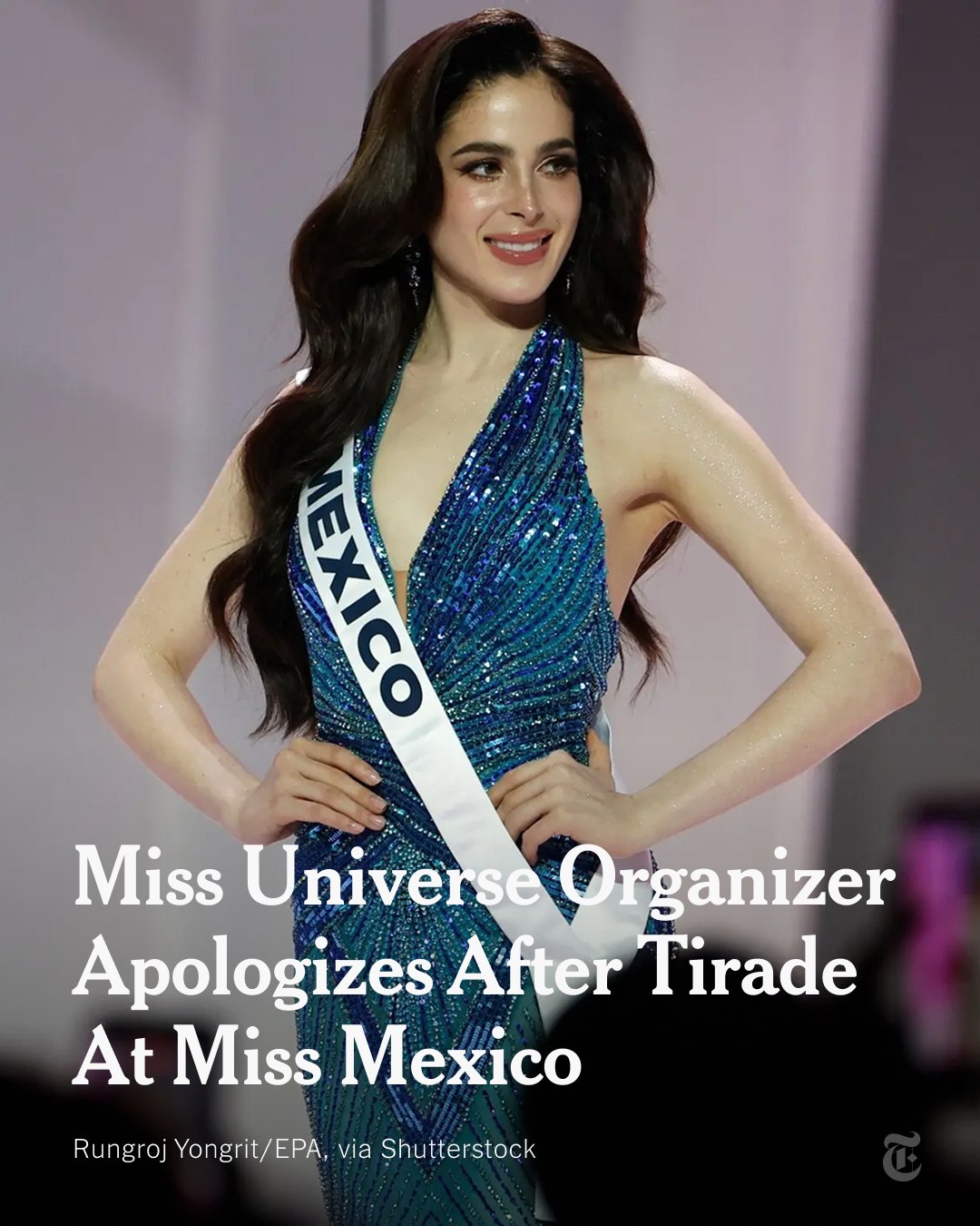 «Πρέπει να ζητήσω συγγνώμη από τις διαγωνιζόμενες», πρόσθεσε. Στη συνέχεια ζήτησε συγγνώμη από τους ακόλουθους του Miss Universe σε όλο τον κόσμο και από όποιον επηρεάστηκε ή ένιωσε άβολα από την κατάσταση.