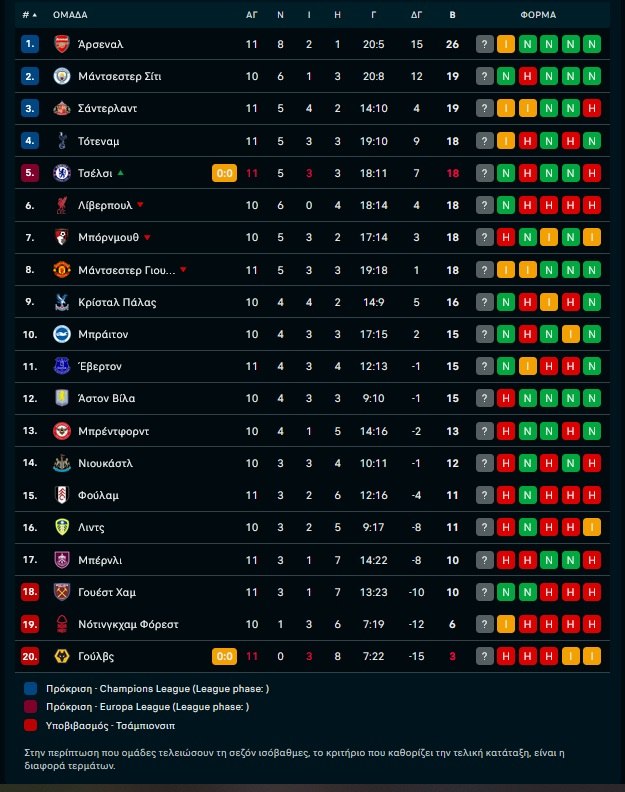 Μετά από αυτή την ισοπαλία η Άρσεναλ έφτασε τους 26 βαθμούς σε 11 παιχνίδια στο πρωτάθλημα ενώ αξίζει να σημειώσουμε πως για την ομάδα του Αρτέτα αυτή ήταν μόλις η 1η ισοπαλία, καθώς ως τώρα μετρούσε 9 νίκες και 1 ήττα.