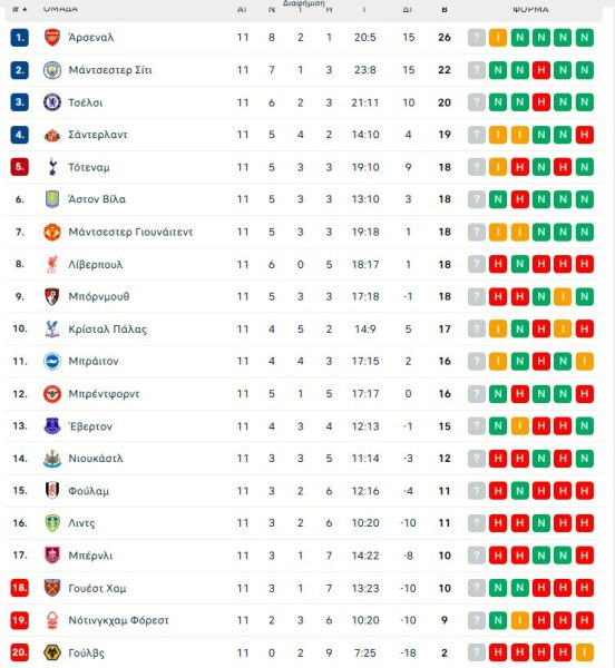 23/11 18:30 Άρσεναλ – Τότεναμ