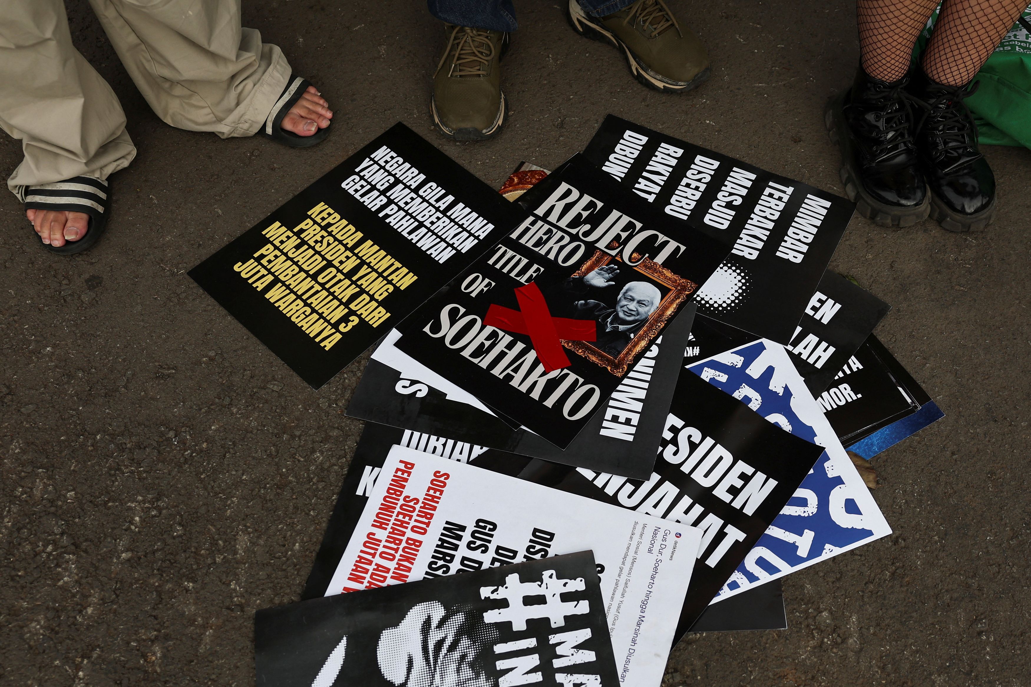 Οι συζητήσεις για την ανακήρυξη του Σουχάρτο ως εθνικού ήρωα έχουν επίσης προκαλέσει διαδηλώσεις στην Τζακάρτα, όπου τις τελευταίες ημέρες διαδηλωτές συγκεντρώνονται κοντά στο προεδρικό μέγαρο κρατώντας πλακάτ που γράφουν «Σταματήστε τον εξαγνισμό του στρατηγού της σφαγής» και «Χιλιάδες πέθαναν, αλλά η χώρα επέλεξε να ξεχάσει».