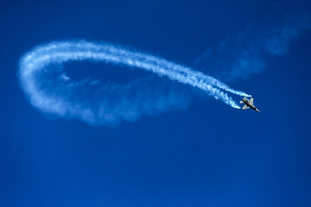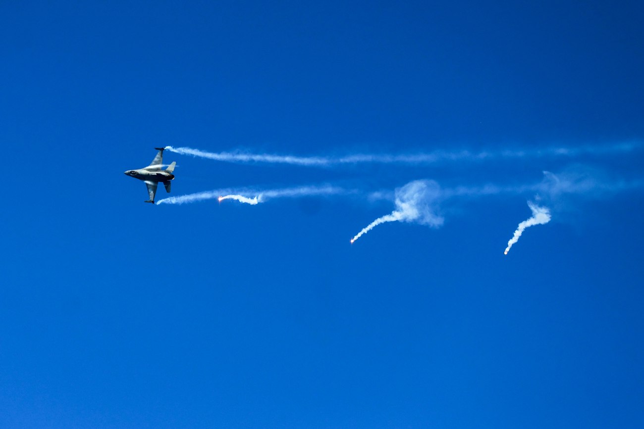 Μάλιστα, ο κόσμος είχε απλωθεί και σε διάφορα σημεία του παραλιακού μετώπου, προκειμένου να παρακολουθήσει την εντυπωσιακή επίδειξη του μονοθέσιου αεροσκάφους F-16 Viper, με χειριστή τον Επισμηναγό Γιώργο Σωτηρίου.