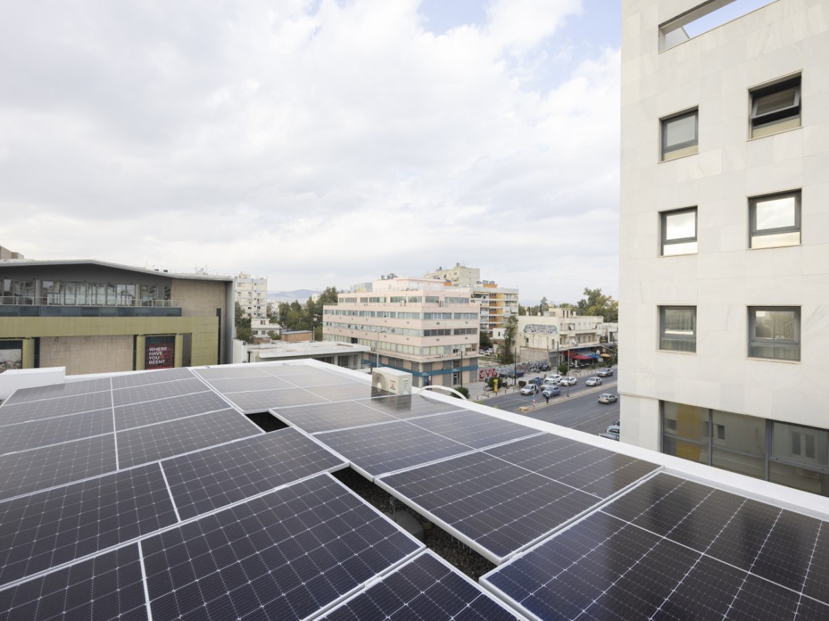 Τα φωτοβολταϊκά που τοποθετήθηκαν στην ταράτσα της παλιάς πολυκατοικίας