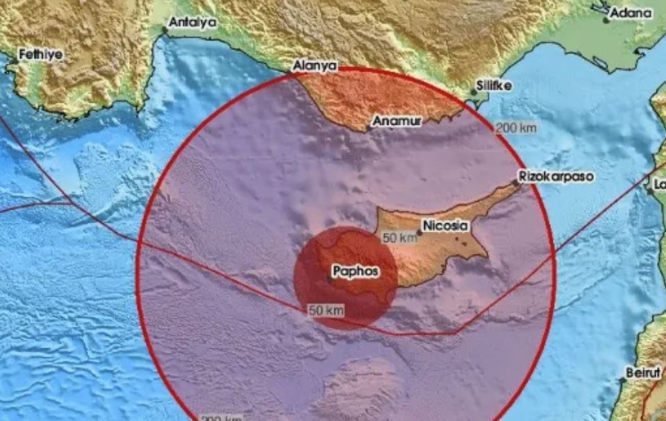 Σύμφωνα με το EMSC, πρόκειται για σεισμό 5,2 Ρίχτερ με εστιακό βάθος 23.7 χλμ. στην περιοχή της Πάφου.