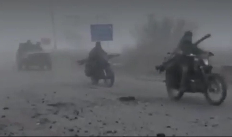 Βίντεο που δείχνουν Ρώσους να οδηγούν πολιτικά αυτοκίνητα και μοτοσικλέτες σε έναν ομιχλώδη δρόμο έχουν γίνει viral