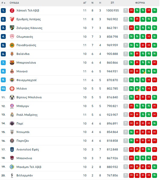 Δείτε πως έχει διαμορφωθεί η βαθμολογία της Euroleague μετά τα αποψινά αποτελέσματα και τη νίκη του Παναθηναϊκού στη Μαδρίτη.