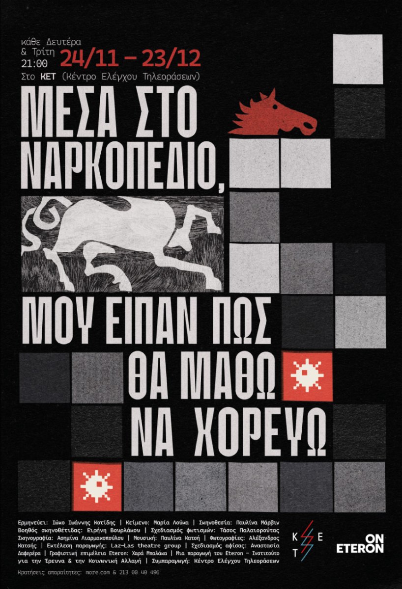 Το έργο - μονόλογος Μέσα στο ναρκοπέδιο, μου είπαν πως θα μάθω να χορεύω σε κείμενο Μαρίας Λούκα, σκηνοθεσία Παυλίνας Μάρβιν και τον Ιώκο Ιωάννη Κοτίδη στον πρωταγωνιστικό ρόλο, έρχεται από τις 24 Νοεμβρίου στο Κέντρο ελέγχου τηλεοράσεων.