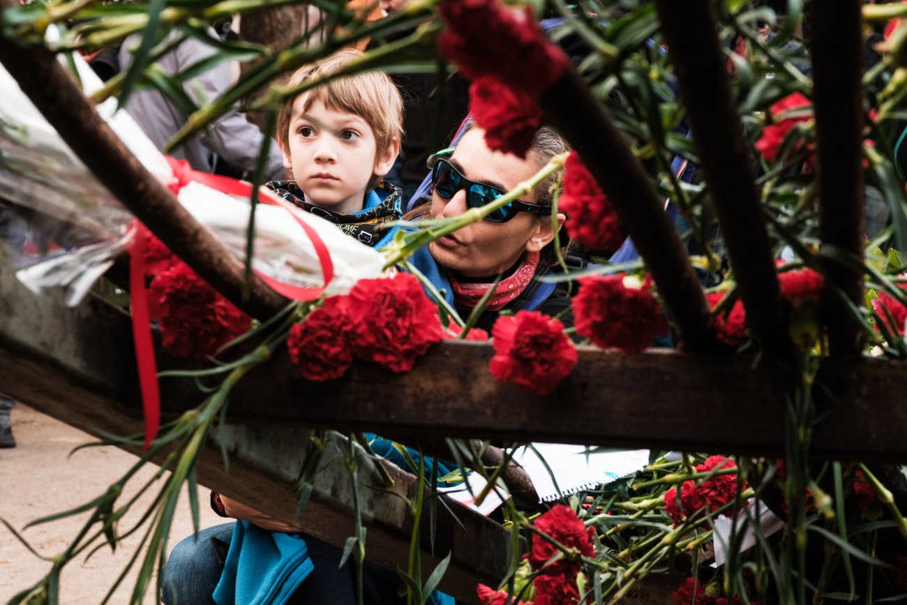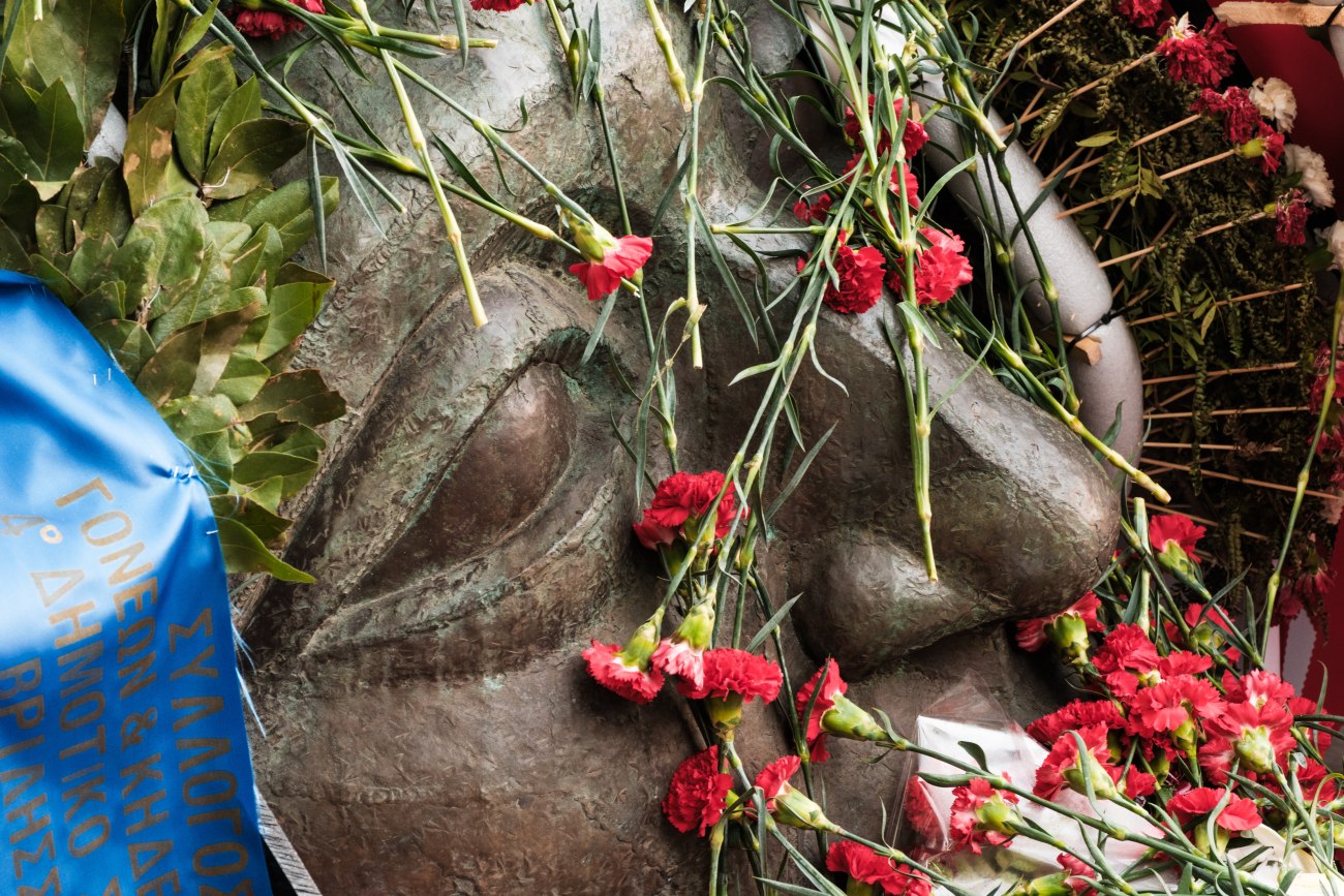 Γονείς με τα παιδιά τους, μαθητές, φοιτητές, εργαζόμενοι, σωματεία, φορείς και εκπρόσωποι του πολιτικού κόσμου αφήνουν λουλούδια και στεφάνια προς τιμήν των νεκρών της εξέγερσης.