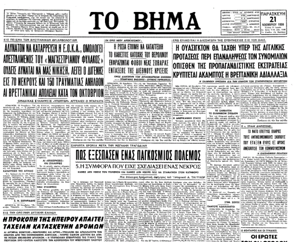 Εις τα τόσα ολοκαυτώματα και τας πράξεις ηρωισμού που υπερβαίνουν το ανθρώπινον μέτρον και των οποίων το αποκλειστικόν προνόμιον έχει η Φυλή των Ελλήνων, προσετέθη προχθές η ηρωική θυσία του Κυριάκου Μάτση, στελέχους της ΕΟΚΑ, ο οποίος εφονεύθη μαχόμενος όπως ο θρυλικός Αυξεντίου και οι μαχηταί της αγροικίας του Λιόπετρι. Όχι λύπην, αλλά μόνον υπερηφάνειαν αισθάνεται το Ελληνικόν Έθνος ολόκληρον διά τον θάνατον του Μάτση. Διότι υπάρχουν θάνατοι που η συμβολική των αξία, αι συνέπειαί των και η απήχησίς των είναι τοιαύται ώστε να τους καθιστούν αξιωτέρους και γονιμωτέρους από την ζωήν. Ο θάνατος του Κυριάκου Μάτση καθίσταται ένα ακόμη σύμβολον και μία ακόμη πηγή εμπνεύσεως διά τους μαχομένους αδελφούς μας της μαρτυρικής μεγαλονήσου εις τον ιερόν αγώνα των διά την αποτίναξιν του ξένου ζυγού. Θα χαλυβδώση ακόμη περισσότερον τας ψυχάς των αγωνιστών της Κυπριακής Ελευθερίας και θα τους ενισχύση εις την απόφασίν των να συνεχίσουν τον αγώνα των μέχρι της δικαιώσεως και του οσίου τέρματός του. Με την εξόντωσιν του Κυριάκου Μάτση οι Άγγλοι αποικιοκράται δεν κατήγαγον νίκην. Υπέστησαν μίαν ακόμη ήτταν. Διότι, όπως ετονίσαμεν ανωτέρω, αι συνέπειαι δεν θα είναι υπέρ αυτών αλλά εις βάρος των. Επί πλέον, η αγέρωχος στάσις του Κυπρίου πατριώτου έδωσεν εις τους Βρεττανούς να εννοήσουν ότι δεν δύνανται να ελπίζουν καμμίαν συνθηκολόγησιν και καμμίαν κάμψιν του Κυπριακού απελευθερωτικού κινήματος, όσας βαναυσότητας και αν διαπράξουν και όσους στρατηγούς και στρατάρχας και αν κινητοποιήσουν εναντίον της δρακός των Κυπρίων αγωνιστών. Θα υποστούν τον αμείλικτον πόλεμον της ΕΟΚΑ μέχρις ότου εγκαταλείψουν τα άνομα και επαίσχυντα σχέδιά των.