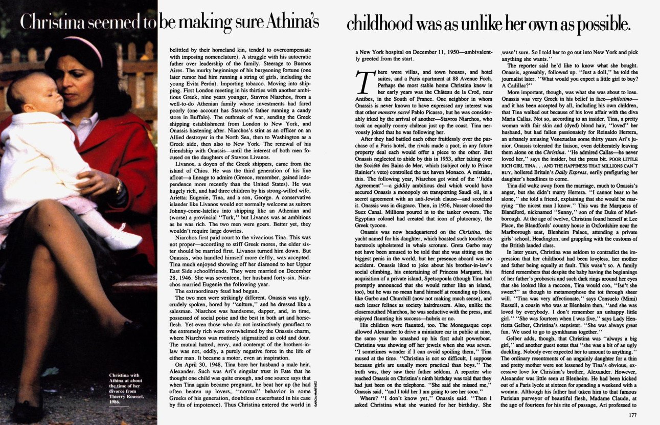 Η Χριστίνα Ωνάση κάποτε εξέφρασε την ευχή η κόρη της να έχει μια πιο ευτυχισμένη ζωή από τη δική της. Η ιστορία δεν επαναλαμβάνεται πάντα, αλλά τα ταμπλόιντ δυστυχώς το κάνουν, και αυτά είναι μεταξύ των Ερινυών που η Αθηνά θα πρέπει να αντιμετωπίσει.