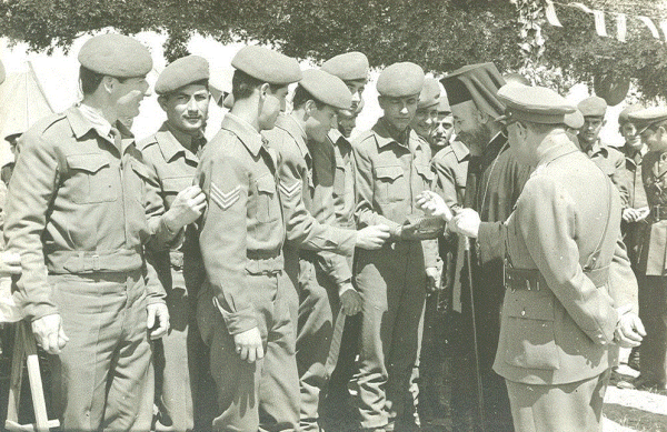 Πάσχα στο στρατόπεδο της ΕΛΔΥΚ παρουσία του Αρχιεπισκόπου Μακαρίου (αρχείο Δημητρίου Καράμπελα)