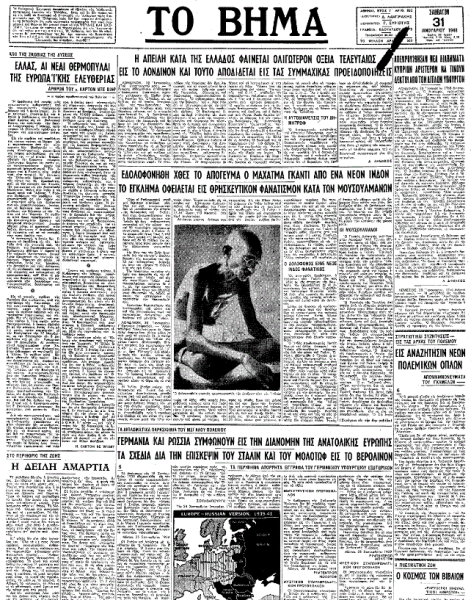 Τα ανωτέρω περιλαμβάνονταν σε άρθρο που είχε δημοσιευτεί στο «Βήμα» το Σάββατο 31 Ιανουαρίου 1948. Το σχετικό πρωτοσέλιδο δημοσίευμα ανήκε σε σειρά άρθρων της εφημερίδας που αφορούσε τα διπλωματικά παρασκήνια τού προ ολίγων ετών λήξαντος Μεγάλου Πολέμου και βασιζόταν στα περίφημα απόρρητα έγγραφα του γερμανικού υπουργείου Εξωτερικών.