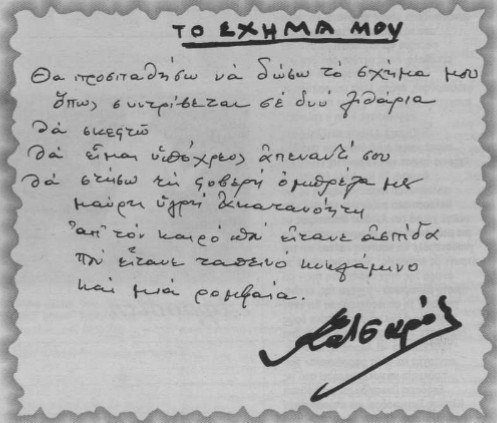 Κατσαρός λέγομαι επίθετον παραληφθέν από ετών ποιητής το επάγγελμα στίχων κι’ ακόμα ποιητής ωδών και τραγουδιών. Ας πω και για μένα όπως ρήτωρ για την Μαρία από άμβωνα κρητικόν. Όχι ποιος είμαι και τι ζητώ αλλά τι κάνω μία μέρα.