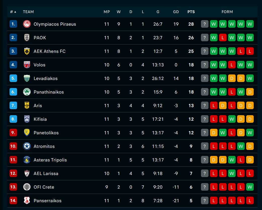 Τα αποτελέσματα και το υπόλοιπο πρόγραμμα της 11ης αγωνιστικής της Super League: