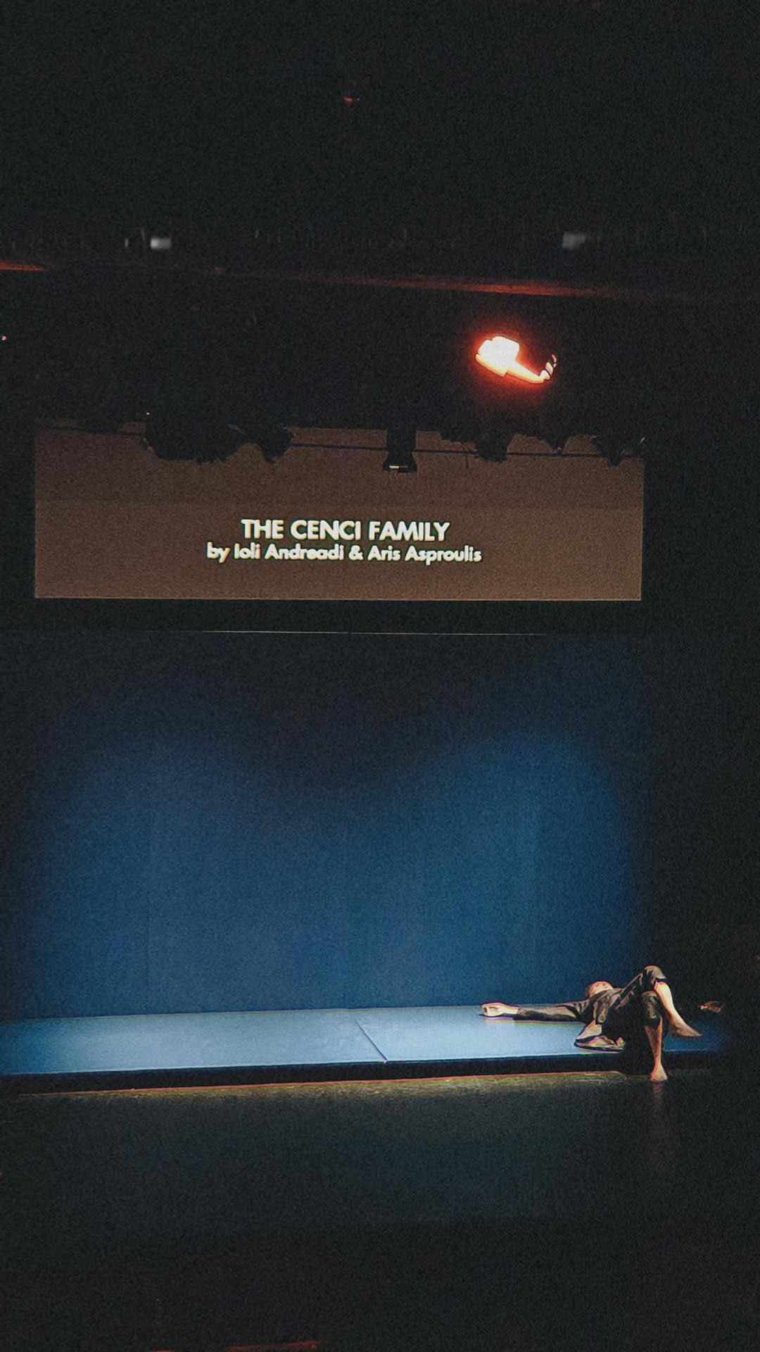 Η παράσταση παρουσιάζεται στο OFF/OFF THEATRE (https://off-offtheatre.com/cenci) στις 25 Νοέμβριου 2025, με την υποστήριξη του Ιδρύματος Ιωάννου Φ. Κωστοπούλου, εγκαινιάζοντας τη συνεργασία της Ιόλης Ανδρέαδη και του Άρη Ασπρούλη με το ιστορικό θέατρο της Ρώμης.