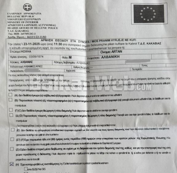 Απαγορεύτηκε στον δημοσιογράφο Αρτάν Χότζα η είσοδος στην Ελλάδα, όταν οι ελληνικές αρχές τον κήρυξαν «persona non grata», χαρακτηρίζοντάς τον απειλή για τη δημόσια τάξη και την εσωτερική ασφάλεια.