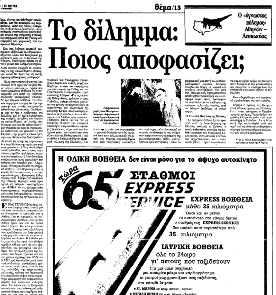 *Εκτενέστατο κείμενο του αειμνήστου Νίκου Κρανιδιώτη αναφορικά με το περίφημο Κυπριακό. Είχε δημοσιευτεί στην εφημερίδα «Το Βήμα», στα φύλλα της 3ης και της 10ης Μαΐου 1987.