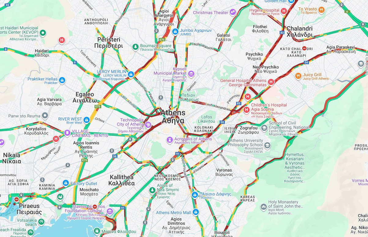 Ειδικότερα, περί τις 18:50 καταγράφεται αυξημένη κίνηση στον Κηφισό και στα δύο ρεύματα. Στην κάθοδο, τα προβλήματα εντοπίζονται από το Κρυονέρι έως το Αιγάλεω, ενώ στην άνοδο οι καθυστερήσεις ξεκινούν από το Μοσχάτο και φτάνουν μέχρι τη Νέα Φιλαδέλφεια.