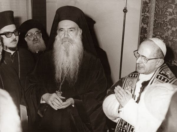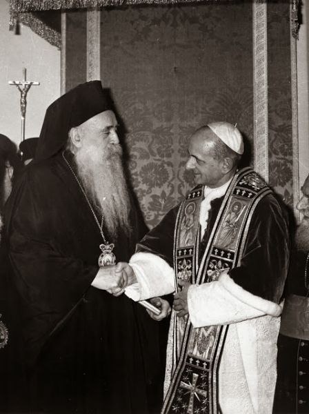 Στις φωτογραφίες του παρόντος άρθρου, ο Οικουμενικός Πατριάρχης Αθηναγόρας και ο Πάπας Παύλος ΣΤ’.