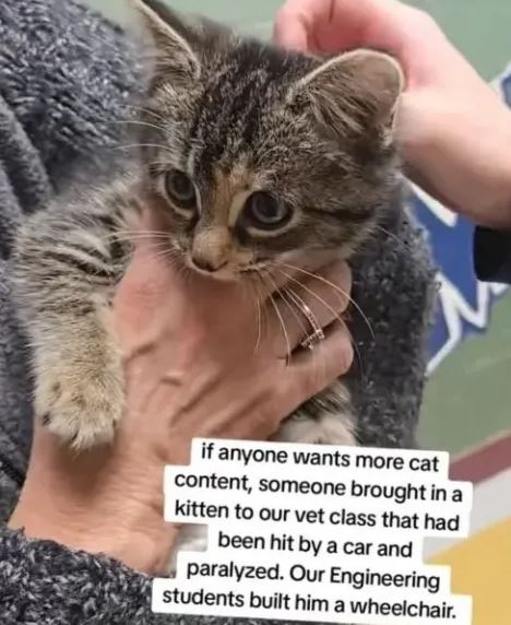 Μια παράλυτη μικρή γάτα μπόρεσε ξανά να βρει την κινητικότητά της, αφού φοιτητές μηχανικής της κατασκεύασαν το δικό της αναπηρικό καροτσάκι. Οι καρδιές όλων έλιωσαν από ένα αξιολάτρευτο βίντεο που μοιράστηκε η Σαμάνθα Νορθ (@snorth00) στο TikTok, το οποίο δείχνει την απίστευτη στιγμή που η ανάπηρη γάτα, με το όνομα Τίμπι, μπόρεσε να τρέξει ξανά.