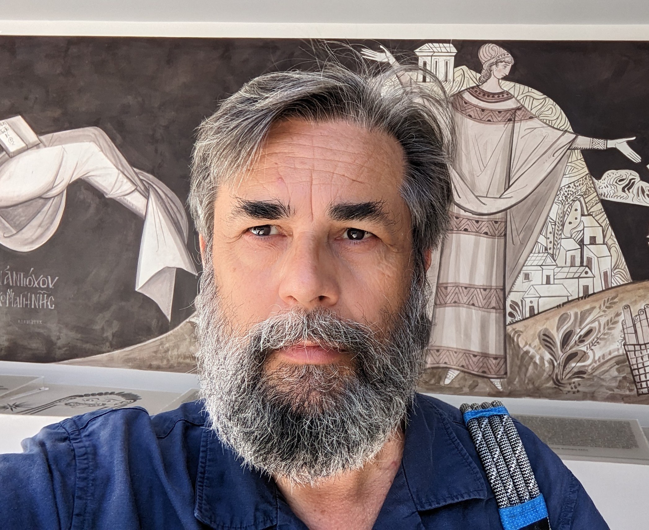 Νομίζω πως αυτό που ένωσε τα δύο εν λόγω πεδία μέσα μου ήταν κατ’ αρχάς μία έλλειψη ή, αν θέλεις, μία απουσία. Πολύ απλά δεν είχα καλλιτεχνικό ταλέντο κι αυτό με κάποιο τρόπο ήταν το κενό που έπρεπε να καλύψω, γιατί από την άλλη είχα μία υπερβολική έφεση σε καθετί το καλλιτεχνικό, μία πληθωρική βιωματικότητα ως προς καθετί το αισθητικό. Πάντα ένιωθα πώς ήμουν μία (βαθύτατα) καλλιτεχνική φύση που δεν θα μπορούσε ποτέ να εκφραστεί (με τυπικούς όρους) καλλιτεχνικά. Κάτι έπρεπε να γίνει, λοιπόν; Φαίνεται πως αυτό που έγινε, τουτέστιν, το πάντρεμα των ερευνητικών ενδιαφερόντων μου για τα θρησκειο-φιλοσοφικά ερωτήματα, ήταν και το μόνο που μπορούσε να γίνει… Έτσι απολαμβάνω πια να προσεγγίζω θεωρητικά και κριτικά το έργο αυτών που έχουν πραγματικά καλλιτεχνικό ταλέντο, όπως έγινε για παράδειγμα με τις εικαστικούς στο «Ταξίδι της συνείδησης προς το Υπερβατικό».