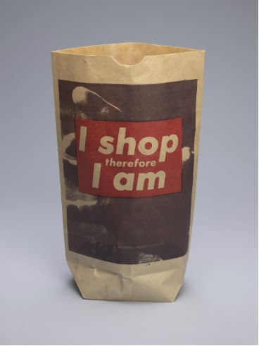 Η Μπάρμπαρα Κρούγκερ, με το χαρακτηριστικό κόκκινο πλαίσιο και την αιχμηρή της ειρωνεία, δεν χρειάστηκε παρά τέσσερις λέξεις για να περιγράψει το σύγχρονο άγχος ταυτότητας. Το «Ψωνίζω, άρα υπάρχω» – παραλλαγή του καρτεσιανού «σκέφτομαι, άρα υπάρχω» – μοιάζει σήμερα σχεδόν προφητικό.