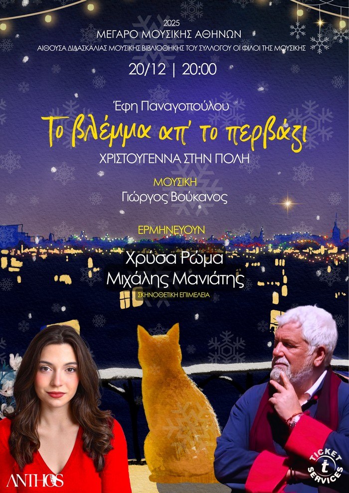 «Το Βλέμμα απ’ το Περβάζι, Χριστούγεννα στην Πόλη» της Έφης Παναγοπούλου Σάββατο 20 Δεκεμβρίου στις 20:00 Μέγαρο Μουσικής Αθηνών