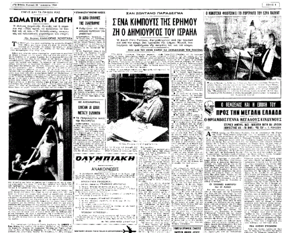 Στο φύλλο του «Βήματος» που είχε κυκλοφορήσει στις 26 Ιανουαρίου 1964, ημέρα Κυριακή, υπήρχε ένα δημοσίευμα αφιερωμένο στον Νταβίντ Μπεν-Γκουριόν.