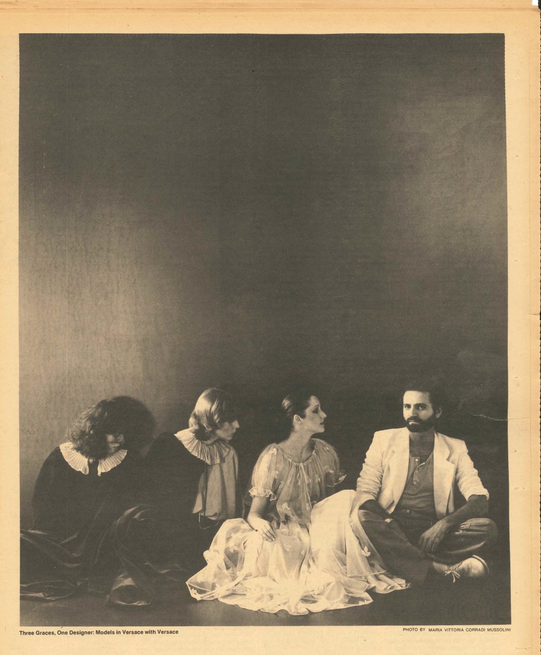 Στο πρώτο, από το 1979, ο Βερσάτσε είναι στο ατελιέ του. Ένα χρόνο πριν, το 1978, είχε ανοίξει την πρώτη του μπουτίκ στην οδό Via della Spiga του Μιλάνου. Στο δεύτερο, καθιερωμένος πια, ο Βερσάτσε και η ελίτ της ιταλικής μόδας, οι Βαλεντίνο, Τζόρτζιο Αρμάνι και Μιούτσια Πράντα, ποζάρουν στο φακό του Καρλ Λάγκερφελντ στο Jungle Sound Studio στο Μιλάνο για το Vanity Fair το 1996.