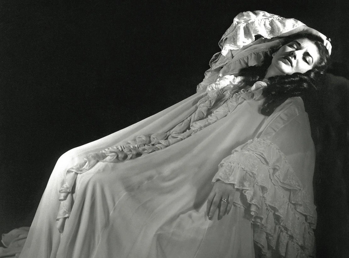 Η Μαρία Κάλλας ποζάρει ως Βιολέτα στην όπερα La Traviata του Βέρντι σε ένα πορτρέτο του 1951. Η αρχή της αδιαπραγμάτευτης κυριαρχίας της ως καλλιτέχνιδα, όταν η Μαρία έδινε τη θέση της στην Κάλλας, την τελειομανή και αδυσώπητη ντίβα, είχε ξεκινήσει.