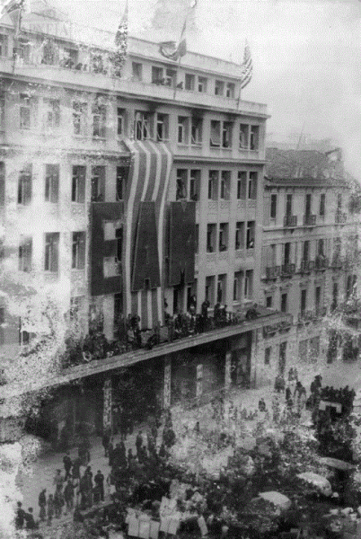 Πλήθος κόσμου έξω από τα γραφεία του ΕΑΜ στην οδό Κοραή τον Οκτώβριο του ’44 (πηγή: Φωτογραφικό Αρχείο ΑΣΚΙ)