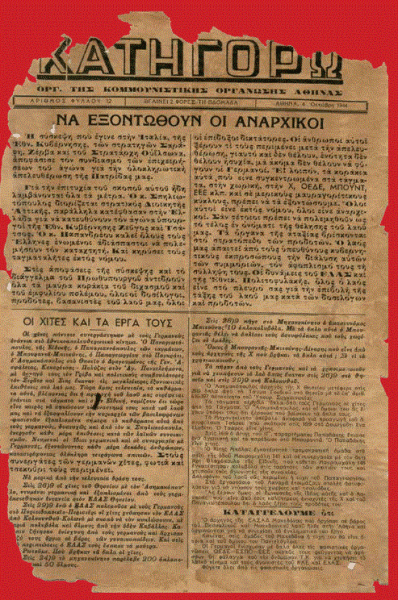 Εφ. «Κατηγορώ», Όργανο της Κομμουνιστικής Οργάνωσης Αθήνας, ανεπίσημο έντυπο της ΟΠΛΑ (πηγή: Βιβλιοθήκη ΑΣΚΙ)