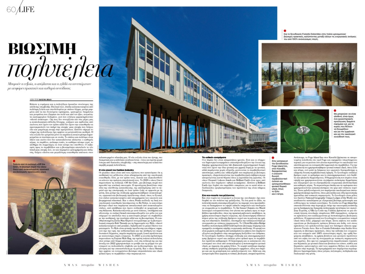 Πανάκριβα σαλέ, περιπέτειες στο χιόνι, ξενοδοχεία με μία μοναδική ιστορία πίσω τους, οινοποιεία με μυθικές αρχιτεκτονικές υπογραφές, σπάνιες συλλογές έργων τέχνης, luxury cars και βέβαια μόδα με super models που έφθασαν αποκλειστικά από το εξωτερικό για να φωτογραφηθούν για την special edition του BHMAGAZINO.