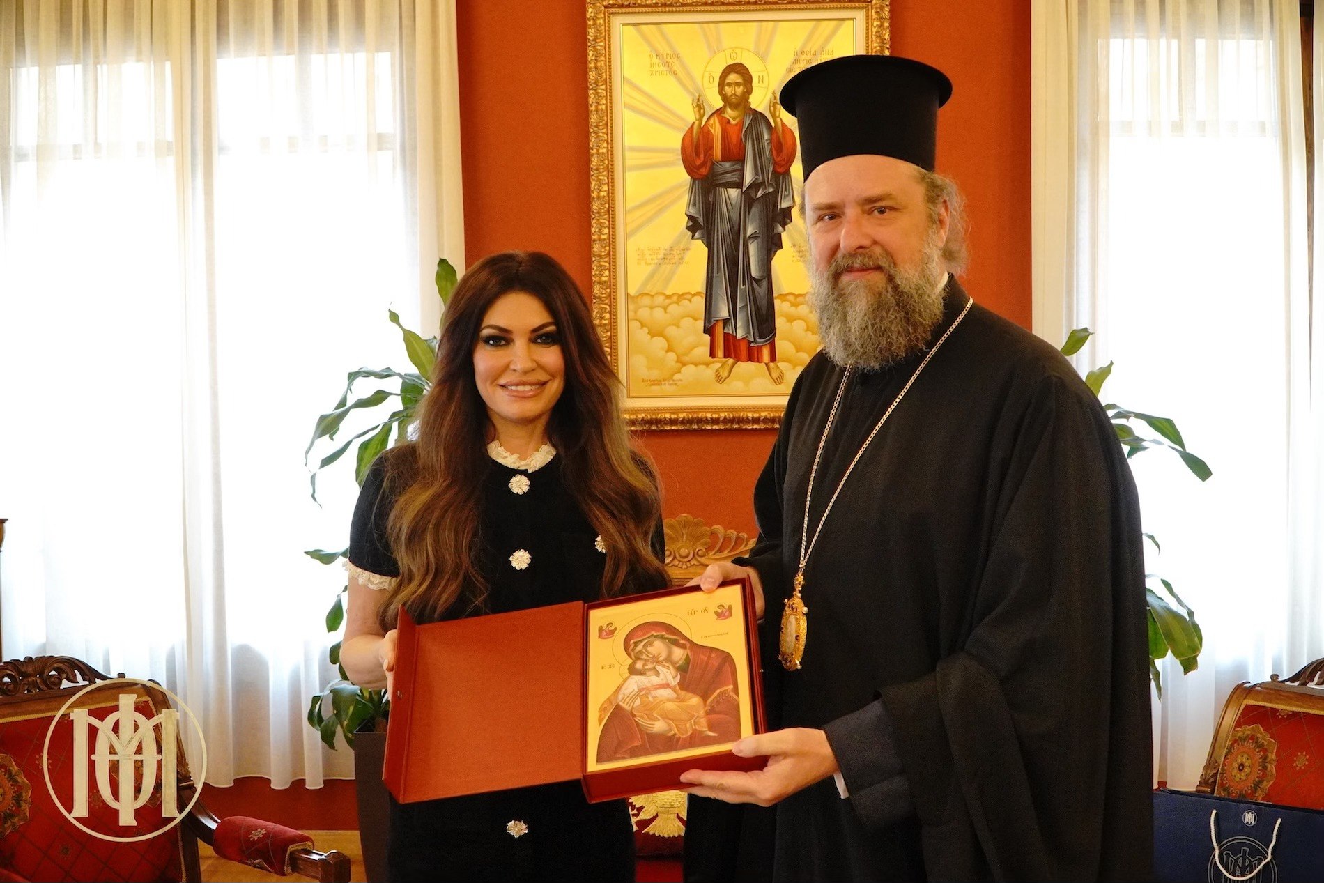 Πριν από την αναχώρηση της κ. Γκιλφόιλ από τον Ιερό Ναό του Πολιούχου ο ποιμενάρχης της προσέφερε την ιερά εικόνα του Αγίου Μεγαλομάρτυρος Δημητρίου.