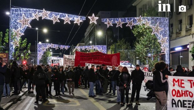 Επεισόδια σημειώθηκαν στο κέντρο της Αθήνας, όταν η πορεία για τον Αλέξανδρο Γρηγορόπουλο συνάντησε αστυνομικό φραγμό στην Εμμ. Μπενάκη.