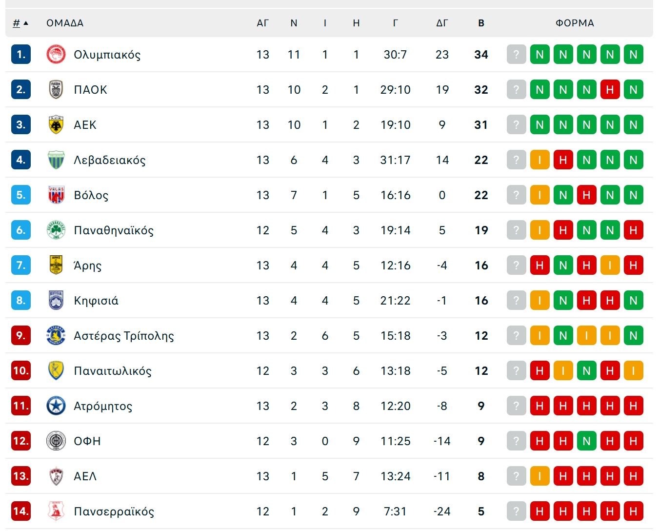 Τα αποτελέσματα και το υπόλοιπο πρόγραμμα της 13ης αγωνιστικής της Super League: