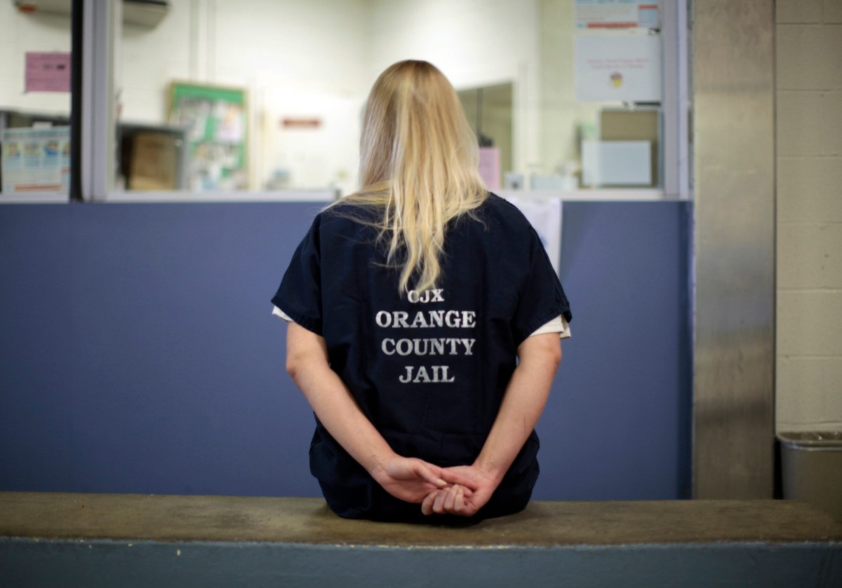 Μια κρατούμενη εισάγεται στη φυλακή του Orange County στη Santa Ana της Καλιφόρνια, στις 24 Μαΐου 2011. Το Ανώτατο Δικαστήριο των ΗΠΑ επικύρωσε τη Δευτέρα μια απόφαση που υποχρεώνει την Καλιφόρνια να μειώσει τον υπερπληθυσμό των φυλακών της κατά περίπου 40.000 κρατούμενους, προκειμένου να επιλύσει τα μακροχρόνια προβλήματα που σχετίζονται με την ανεπαρκή ιατρική και ψυχιατρική περίθαλψη.