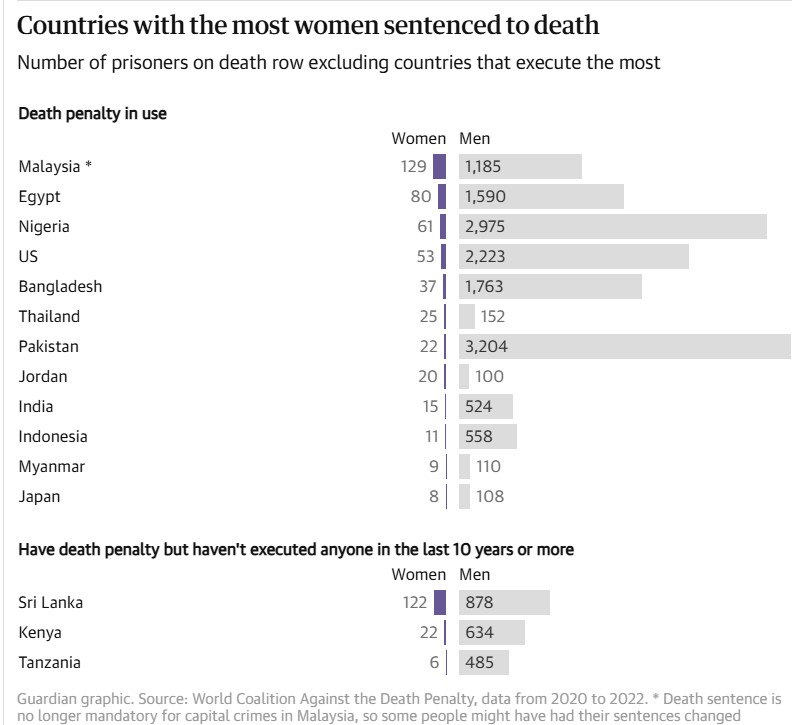 Χώρες με τις περισσότερες γυναίκες που έχουν καταδικαστεί σε θάνατο