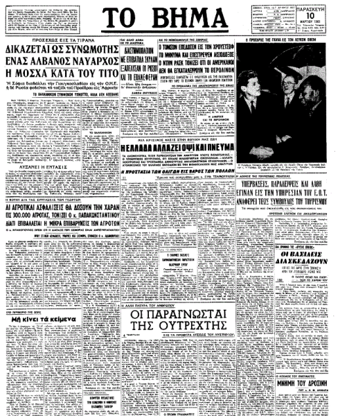 «ΤΟ ΒΗΜΑ», 10.3.1961, Ιστορικό Αρχείο «ΤΟ ΒΗΜΑ» & «ΤΑ ΝΕΑ»
