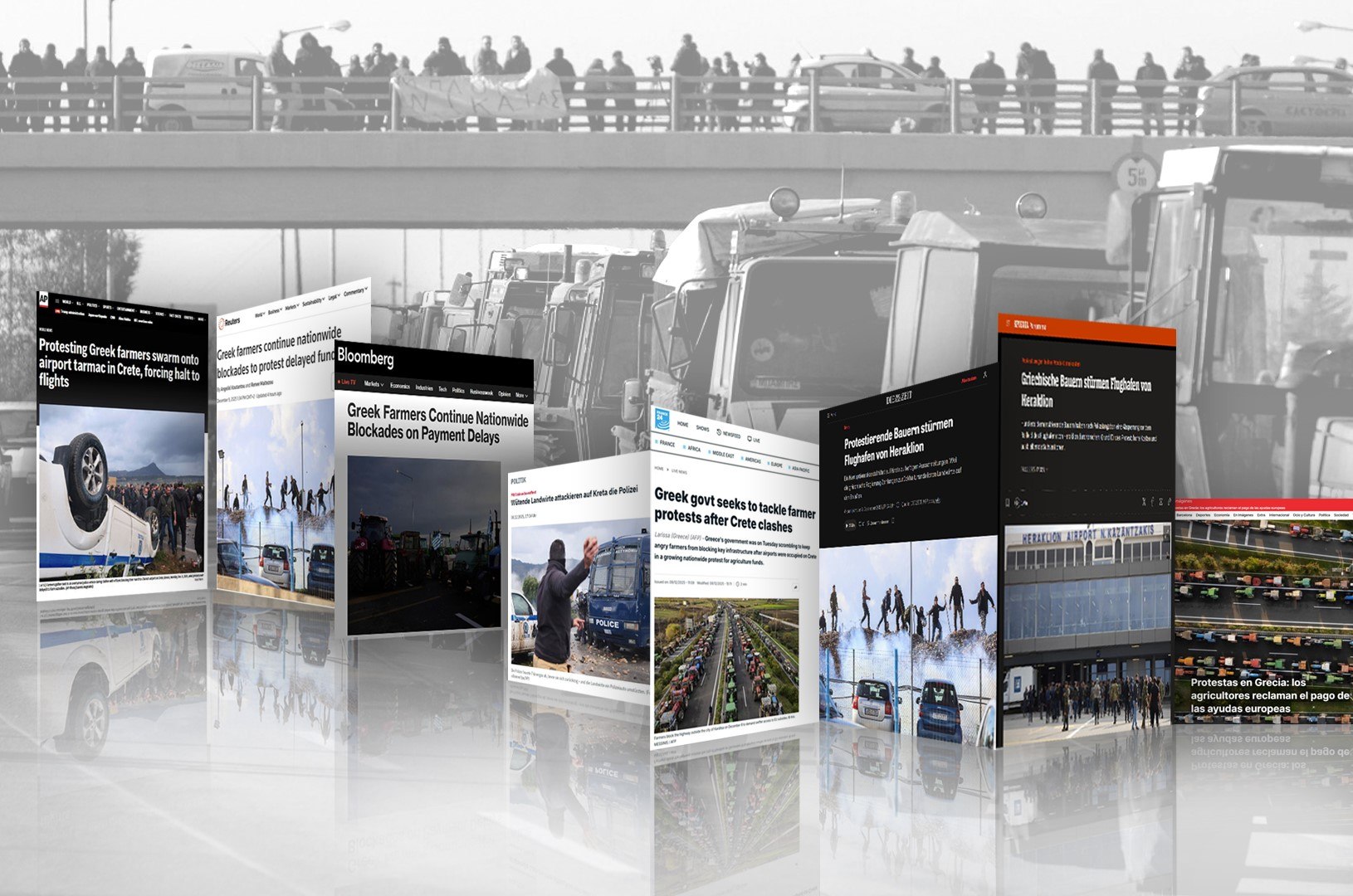 Τα αγροτικά μπλόκα στην Ελλάδα, η κλιμάκωση των κινητοποιήσεων και οι συγκρούσεις με την αστυνομία στο Ηράκλειο και τα Χανιά της Κρήτης πρωταγωνιστούν στα διεθνή ΜΜΕ.