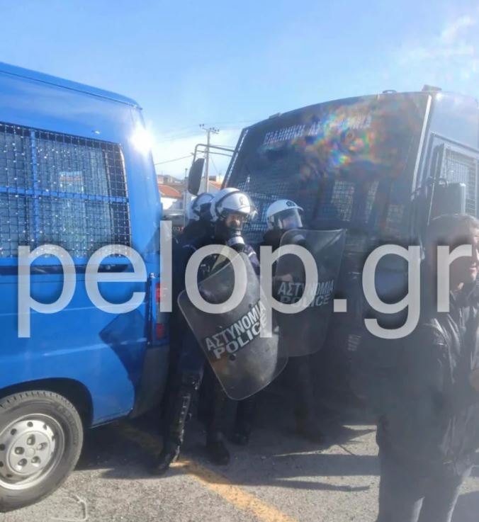 Ωστόσο, στο σημείο που ενώνεται η Εθνική Οδός με την περιμετρική υπήρχε κλούβα των ΜΑΤ και δυνάμεις της αστυνομίας δεν επέτρεπαν την περαιτέρω μετακίνηση, ενώ μπλοκαρίστηκε η κυκλοφορία και 2 ασθενοφόρων τα οποία έκαναν αναστροφή και έφυγαν.