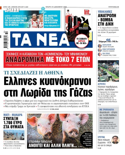- Στα «ΝΕΑ» της Τετάρτης: Ελληνες κυανόκρανοι στη Λωρίδα της Γάζας