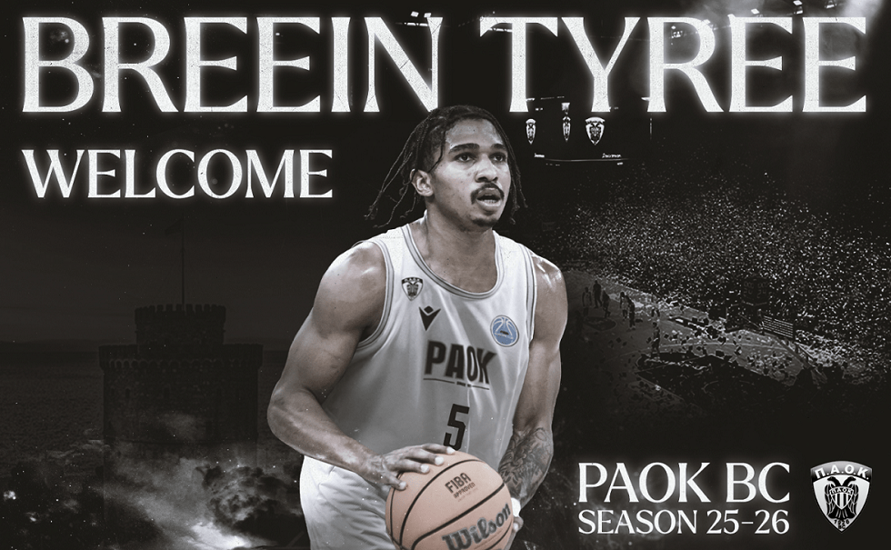 «Η ΚΑΕ ΠΑΟΚ ανακοινώνει τη συμφωνία με τον Αμερικανό καλαθοσφαιριστή Breein Tyree, ο οποίος θα ενισχύσει την προσπάθεια της ομάδας μας ως το τέλος της αγωνιστικής περιόδου 2025-26.