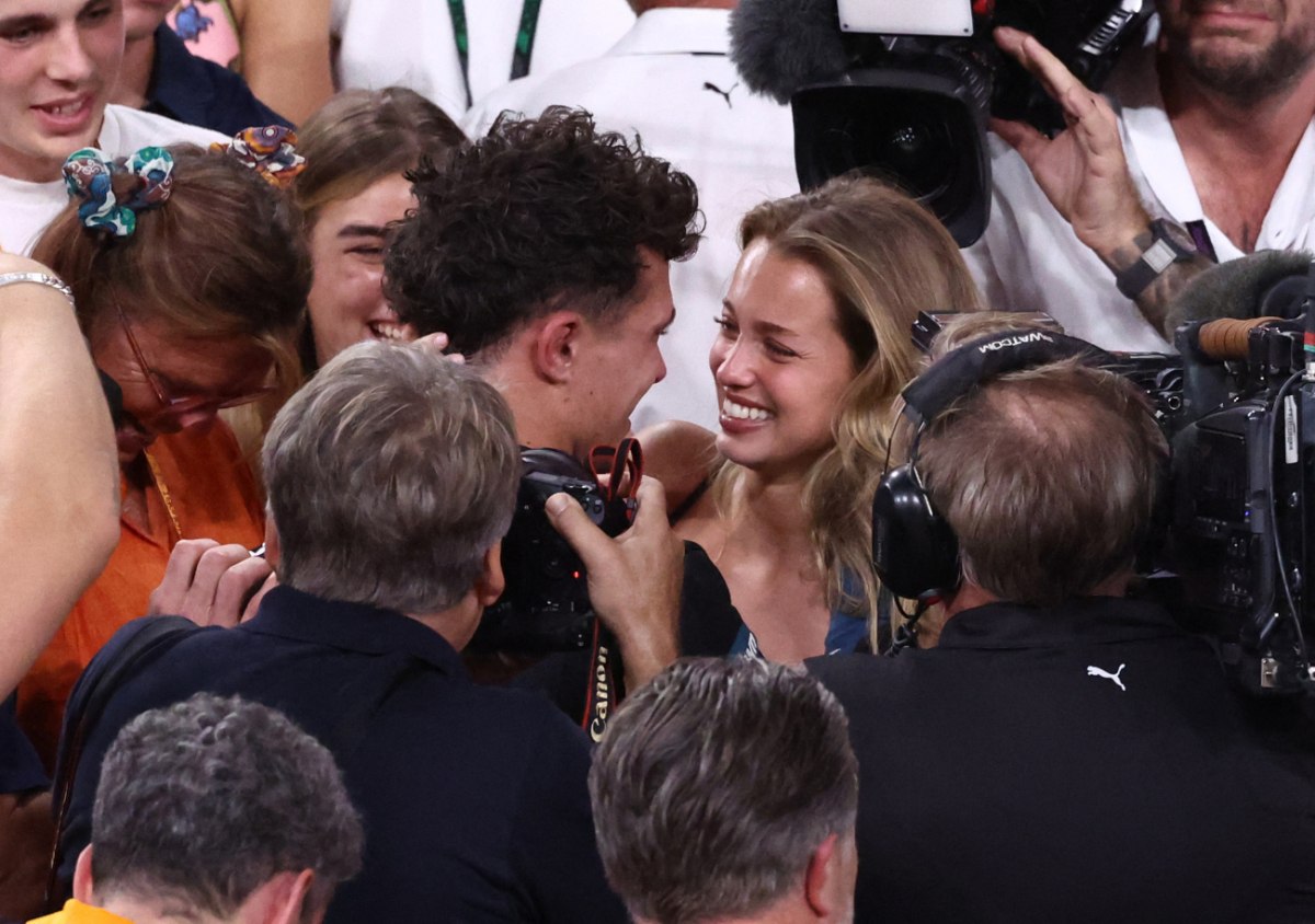 Έχουν περάσει λίγα λεπτά από τη στιγμή που πέρασε τη γραμμή τερματισμού και «πάρκαρε» την πορτοκαλί του McLaren. Αφού βγήκε από το κόκπιτ του μονοθεσίου του, ύψωσε τις γροθιές του στον αέρα και έτρεξε στη μητέρα του Σίσκα, ο Λάντο Νόρις «προσγείωθηκε» στην αγκαλιά μιας πανέμορφης καστανόξανθης γυναίκας, που τον επιβράβευσε με ένα παθιασμένο φιλί.